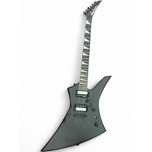 Unleash sharp-edged style and searing tone with this used Jackson JS32T Kelly in Black, a solid body electric built for fast, aggressive playing. In good condition, it features a bolt-on maple neck with a speed-friendly fingerboard, 24 jumbo frets, dual high-output humbuckers, a hardtail string-through-body bridge for stable tuning and punchy sustain, and straightforward controls for quick tone shaping. Perfect for rock and metal riffs.