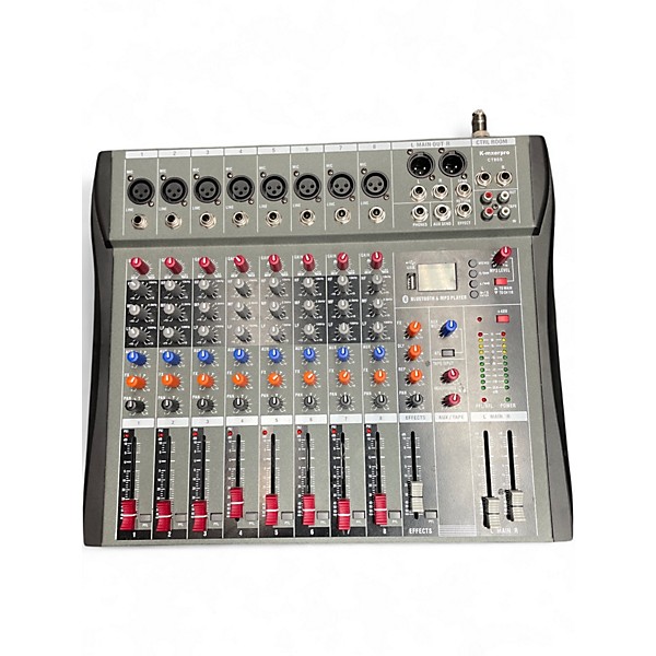 Used K-mixerpro CT80S Unpowered Mixer in good condition, perfect for live sound or studio setups. Features 8 input channels with XLR and 1/4" line options, 3-band EQ per channel, auxiliary send, and balanced main outputs. Rugged construction ensures reliability, while intuitive controls make operation easy for beginners and pros alike. Delivers clean sound and flexible routing in a compact design, ideal for small venues, rehearsals, or podcasting on a budget.