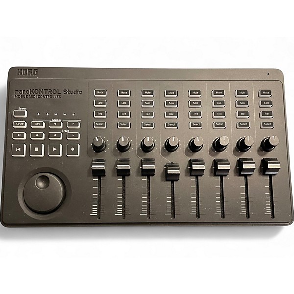 Compact and powerful, this used KORG Nano Kontrol Studio is in excellent condition and perfect for mobile music production. It features 8 faders, 8 knobs, and 32 buttons, offering hands-on control over your DAW via USB or Bluetooth MIDI. Compatible with Mac, Windows, and iOS, it delivers precise control in a lightweight, wireless design. Ideal for producers on the go, it's both versatile and user-friendly, fitting seamlessly into any studio setup.