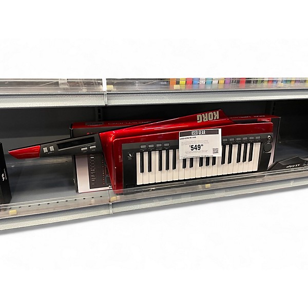 Used KORG RK-100S keytar synthesizer in Good condition features 37 velocity-sensitive mini keys, 200 built-in programs, and dual ribbon controllers for expressive performance. This portable synth includes a powerful MMT sound engine, arpeggiator, and USB/MIDI connectivity, making it ideal for stage use or studio creativity. Battery-operated for freedom of movement, the RK-100S delivers dynamic control and unique performance capabilities in a sleek, lightweight design. Perfect for synth players seeking standout flair and versatile sound shaping.