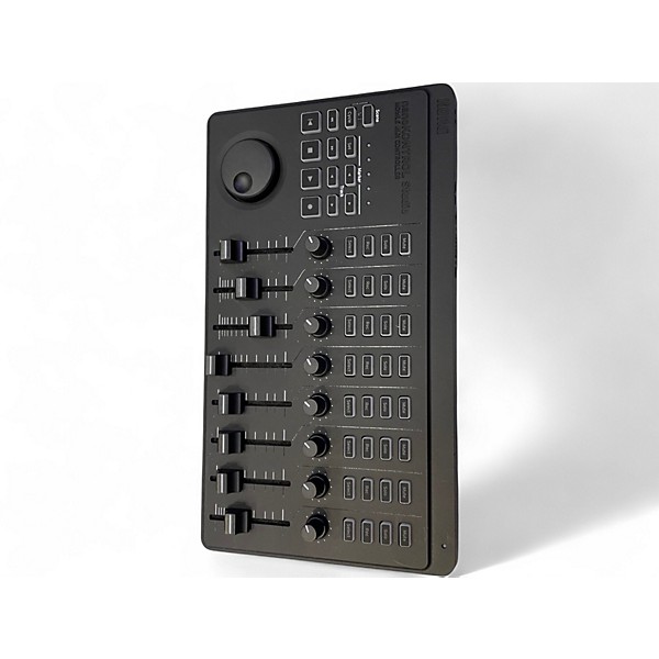 Used KORG nanoKONTROL Studio MIDI Controller in Good condition, offering wireless Bluetooth and USB connectivity for flexible DAW control. Features include 8 faders, 8 knobs, and 32 buttons for transport and track functions, with compatibility across Mac, Windows, and iOS. Its compact, battery-powered design makes it ideal for mobile music production setups. Streamline your workflow with hands-on control in a lightweight, portable unit that seamlessly integrates with your favorite software.
