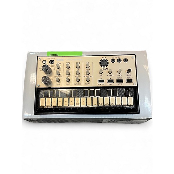 Used KORG volca keys Synthesizer in good condition, delivering classic analog-style tones in a compact, portable unit. Features a 3-voice polyphonic analog modeling engine with 27-key touch keyboard, built-in delay, and a powerful 16-step sequencer for creating riffs and evolving patterns fast. MIDI In and sync I/O make it easy to integrate with other gear, while battery or AC power keeps it ready for studio or on-the-go sessions.