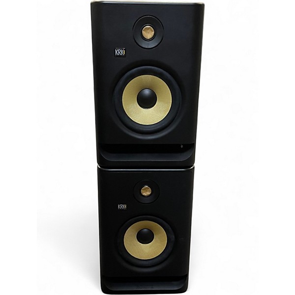 Used KRK RP7 ROKIT G4 powered studio monitor pair in great condition, delivering accurate, punchy sound for mixing and production. Each monitor features a 7" woofer and 1" tweeter, 145W bi-amped power, and a front-firing bass port for solid low-end response. Built-in DSP room tuning with an LCD EQ menu helps tailor playback to your space, while balanced XLR/TRS inputs make hookup easy for any studio setup.