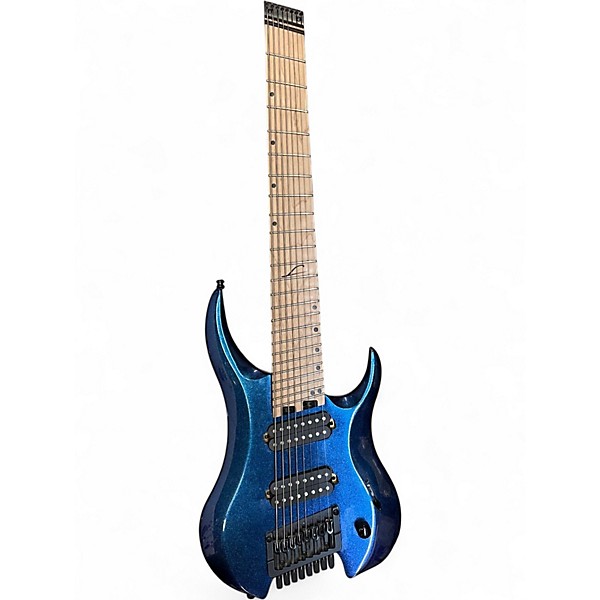 Used Legator G8FS in Pearl Purple/Blue Sparkle finish, this 8-string solid body electric guitar is in good condition and built for high-performance playability. It features a lightweight multi-scale design, a fast bolt-on neck, 24 frets, and dual humbuckers for powerful tone. The eye-catching finish enhances its modern aesthetic, making it perfect for extended range players seeking both style and substance in one guitar.