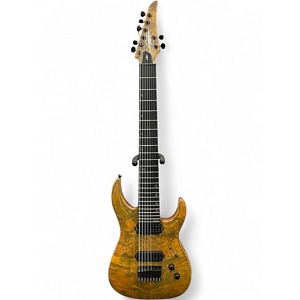 Unleash modern metal tone and sleek playability with this used Legator Ninja 8 Brown Burl solid body electric guitar in great condition. Built for extended-range performance, it features an 8-string design, fast neck profile, dual humbuckers for tight, high-output clarity, and a stable fixed bridge for reliable tuning and punchy attack. The striking brown burl top delivers premium style while the ergonomic body keeps it comfortable for long sessions onstage or in the studio.