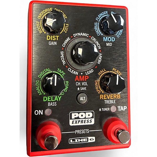 Get big Line 6 tone in a pocket-sized package with this Used Pocket POD Express amp modeler/effects processor in great condition. Packed with classic Line 6 amp models, multiple effects, and user presets, it’s perfect for practice, recording, or plugging straight into a mixer. Features include a headphone output for silent playing, stereo/line outputs for direct connection, and battery-powered portability for grab-and-go sessions.