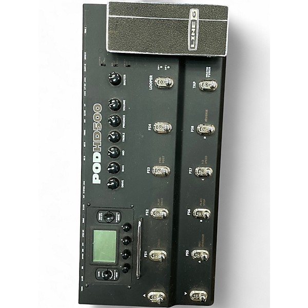 Used Line 6 Pod HD500 Amp Modeler and Multi-Effects Processor in fair condition, showing signs of regular use but fully functional. Features include over 100 HD amp and effect models, 512 user presets, a built-in expression pedal, and USB connectivity for direct recording. Ideal for guitarists seeking versatile tone-shaping tools for stage or studio use. Compatible with Mac and PC via Line 6 software for editing and firmware updates.