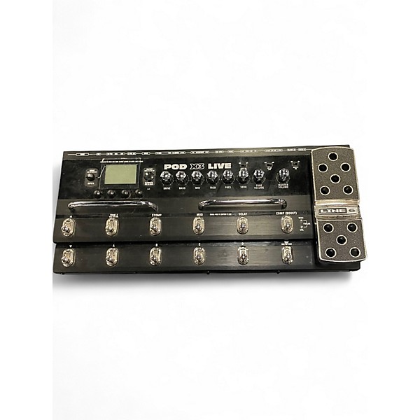 Used Line 6 POD X3 Live amp modeler/effects processor in good condition, ready for stage or studio. Features dual-tone processing to run two amp and cab models at once, plus a wide range of built-in effects and onboard expression pedal. Rugged floorboard design with multiple footswitches, USB connectivity for recording and editing, and stereo 1/4" outputs with headphone out for quiet practice. Great all-in-one tone solution for guitar or bass.