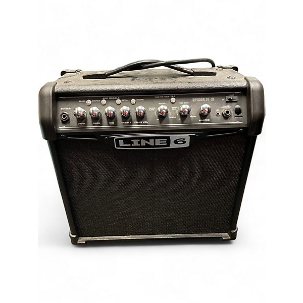 Used Line 6 Spider IV 15W 1x8 guitar combo amp in Good condition, delivering versatile tones for practice and small jams. This solid-state modeling amp features a single 8" speaker, multiple amp models and built-in effects for everything from clean sparkle to high-gain punch. Easy front-panel controls and a headphone/recording output make it great for quiet playing and quick dial-ins. A reliable, great-sounding grab-and-go combo.