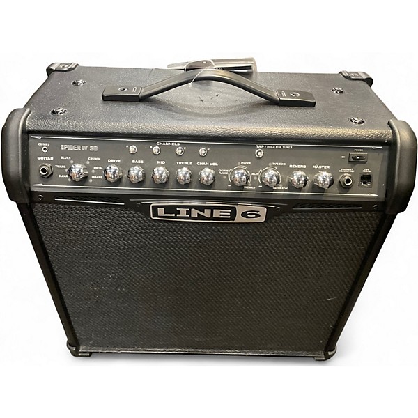 Power up your tone with this Used Line 6 Spider IV 30W 1x12 guitar combo amp in great condition. Featuring 30 watts of output through a punchy 12-inch speaker, it delivers classic amp flavors plus modern versatility with multiple amp models, built-in effects, and onboard presets for quick recall. Ideal for practice, rehearsals, and small jams, the Spider IV offers easy-to-use controls, great feel, and big sounds in a portable combo.