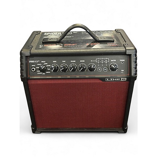 Used Line 6 Spider V 20 MkII guitar combo amp in Good condition, delivering 20 watts through a punchy 1x8 speaker for great practice and small-room tones. Enjoy a wide range of built-in amp models and effects, easy front-panel controls, and versatile sound shaping for clean, crunch, and high-gain styles. A compact, dependable choice for players who want modern tones and convenience in one portable combo.