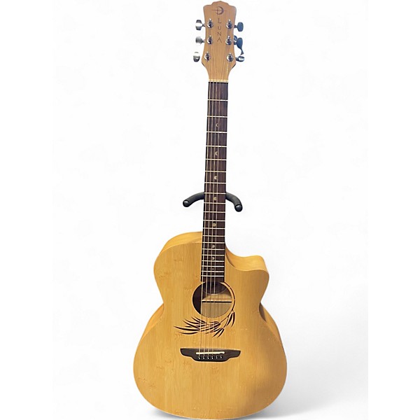 Used Luna bamboo Natural Acoustic Electric Guitar