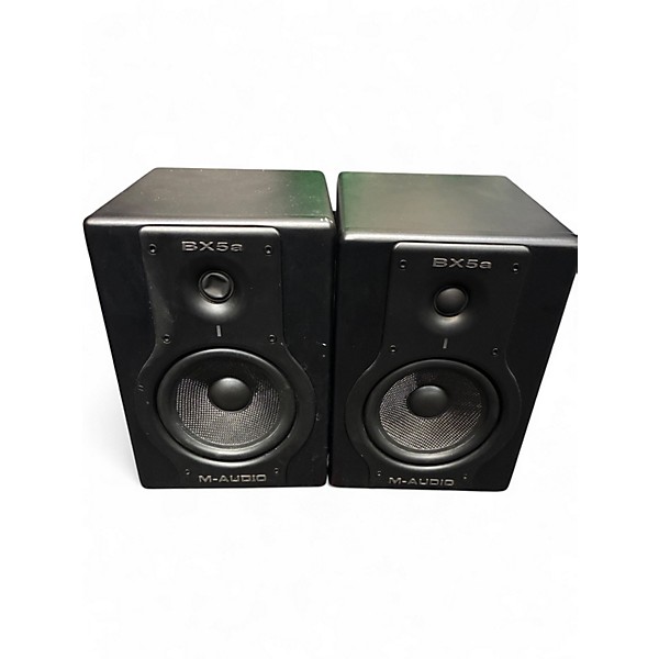 Used M-Audio BX5A powered studio monitor pair in good condition, delivering accurate nearfield sound for mixing, editing, and home studios. Each monitor features a 5" woofer and 1" tweeter with bi-amplified power (70W total per speaker) for clear highs, solid mids, and tight low end. Rear-panel acoustic controls and balanced XLR/TRS plus RCA inputs make setup easy with interfaces, mixers, and computers. Reliable performance and great value for any production workspace.