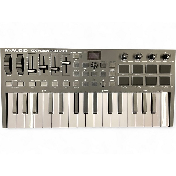 Compact and powerful, this used M-Audio Oxygen Pro Mini MIDI Controller is in great condition and perfect for producers on the go. It features 32 velocity-sensitive keys, 8 backlit pads, 4 assignable knobs and faders, and intuitive DAW integration. USB-powered and compatible with most music software, it's ideal for creating music anywhere. With smart chord, scale modes, and an arpeggiator, this controller enhances creativity while remaining highly portable and responsive.