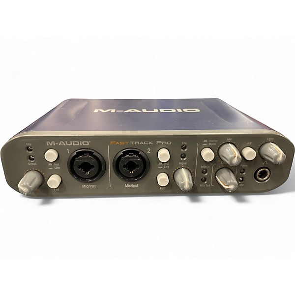 Used M-Audio Fast Track Pro USB audio interface in good condition, offering 2-in/2-out 24-bit/96kHz audio resolution, dual XLR/TRS combo inputs with phantom power, MIDI I/O, and S/PDIF digital I/O. Compatible with most popular DAWs, it's perfect for home recording, podcasting, or mobile production. Rugged and compact for on-the-go use, this reliable interface delivers professional-quality sound and easy USB connectivity for Mac and PC.