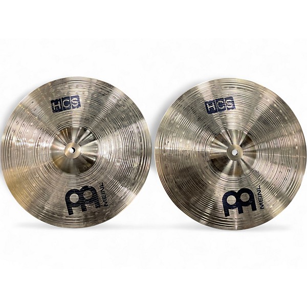 Used MEINL 14in HCS Hi Hat Pair Cymbals in fair condition, showing visible signs of wear but fully functional. Crafted from MS63 brass alloy, these cymbals offer bright, clear tones ideal for beginners or practice setups. With a medium weight and traditional finish, they deliver a crisp "chick" sound when closed and a smooth wash when open. A reliable choice for drummers seeking affordability and consistent performance in a used hi-hat pair.