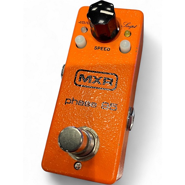 Get classic MXR phasing in a compact size with this used MXR M290 Phase 95 in good condition. It combines Phase 45 and Phase 90 circuits with a 45/90 switch plus Script mode for smoother vintage swirl or bolder modern sweep. Features include a true bypass hardwire relay, bright status LED, and standard 1/4" in/out jacks. Runs on 9V battery or optional 9V DC adapter for easy pedalboard power.