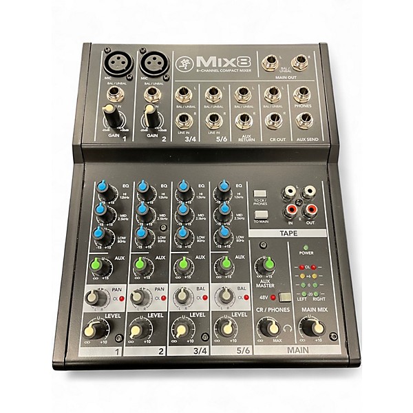 Used Mackie MIX 8 8-channel unpowered mixer in great condition, perfect for small live setups, podcasting, and home studios. Features include 2 mic/line inputs with studio-level preamps, 2 stereo 1/4" line inputs, and a dedicated stereo RCA input/output. Compact and durable, it offers intuitive layout and high-quality audio performance, making it a reliable choice for musicians and content creators looking for a budget-friendly mixing solution.