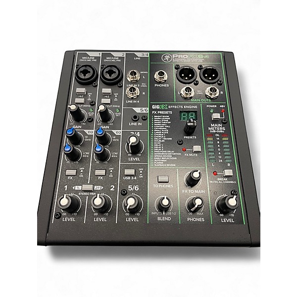 Get reliable live-sound control with this used Mackie ProFX unpowered mixer in good condition. Designed for gigs, rehearsals, and recording, it delivers classic Mackie durability with low-noise mic preamps, flexible EQ, and onboard ProFX effects for quick, polished mixes. Multiple mic/line inputs and stereo channels make it easy to manage vocals, instruments, and playback sources, while balanced main outputs provide clean connections to powered speakers or an amp system.