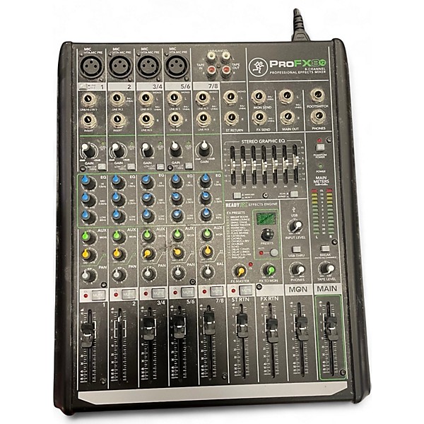 Used Mackie PROFX8 Unpowered Mixer in good condition, featuring 8 total inputs with 4 low-noise Mackie mic preamps, 3-band EQ, built-in RMFX effects processor with 16 effects, and USB I/O for recording and playback. Ideal for small gigs, home studios, or podcasts, it delivers rugged performance and clear sound in a compact, road-ready design. This reliable mixer provides responsive faders and durable controls, making it a great choice for both beginners and seasoned audio professionals.
