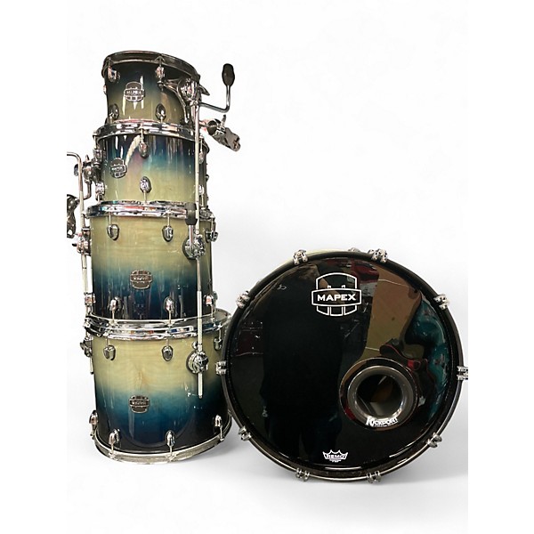 Used Mapex 5-Piece Saturn Standard drum kit in Tropical Turquoise, in great condition and ready for the stage or studio. Featuring Mapex Saturn hybrid maple/walnut shells for warm lows, focused mids, and crisp attack, with pro-grade hardware for solid tuning stability. Standard 5-piece configuration includes bass drum, mounted toms, and floor tom with matching finish for a striking look that sounds as good as it plays.