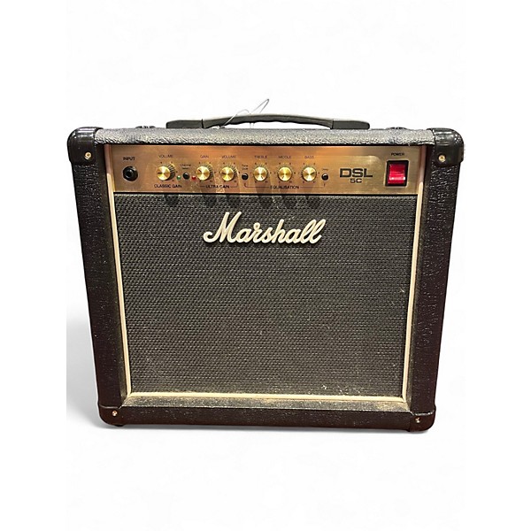 Used 2022 Marshall DSL5C 5W 1x10 Tube Guitar Combo Amp in Good condition, delivering classic Marshall tone with dual channels—Classic Gain and Ultra Gain—and built-in reverb. Powered by one ECC83 preamp tube and one 12BH7 power tube, it pushes 5 watts through a 10" Celestion Ten-30 speaker. Adjustable power level to 0.5W makes it perfect for practice or studio use. Shows minor cosmetic wear but functions perfectly and sounds great.