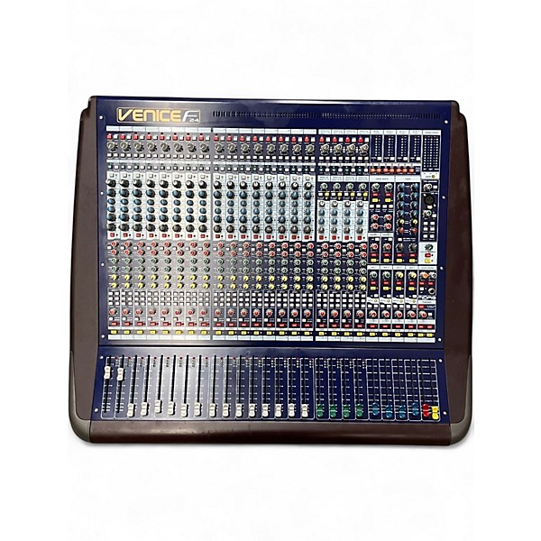 Used Midas VENICE F24 unpowered mixer in great condition, offering 24 input channels, 4-band EQ with swept mids, and premium mic preamps for superior sound quality. Ideal for studio or live mixing, it features 6 aux sends and FireWire connectivity for seamless integration with digital systems. Rugged and reliable, this mixer delivers the renowned Midas audio performance at exceptional value—perfect for professionals seeking analog warmth with modern functionality.