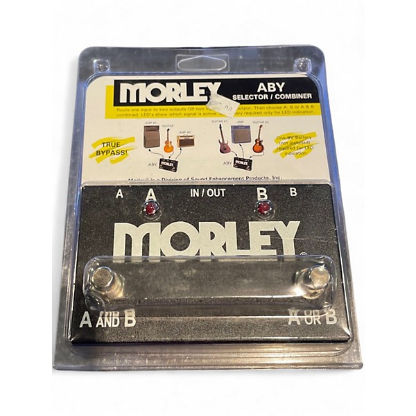 Used Morley ABY Selector Combiner Pedal in excellent condition. This rugged, passive switcher allows you to route one input to two outputs or combine two inputs into one output, ideal for switching between amps or instruments. Features dual footswitches for A/B or A+B operation and is housed in a durable cold-rolled steel chassis. No power required for basic switching functionality; LED operation requires a 9V battery or adapter. Reliable and road-ready performance.