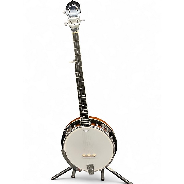 Used Mulucky 5-String Banjo in Good condition, featuring a rich mahogany body for warm, resonant tone. Ideal for beginners and intermediate players, this banjo offers a traditional open-back design, smooth fretboard, and geared tuners for stable tuning. With its 38-inch length and 24 brackets, it delivers reliable performance and classic bluegrass sound. Signs of light wear but fully functional, it’s a great choice for players seeking authentic tone on a budget.