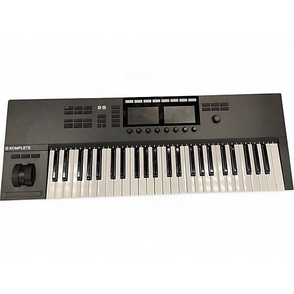 Used Native Instruments Komplete Kontrol S49 MK2 MIDI Controller in good condition. Features 49 semi-weighted Fatar keys with aftertouch, dual high-resolution color screens for browsing and control, and Light Guide for key mapping. Includes pitch and mod wheels, touch strip, and seamless integration with Komplete software and major DAWs. Designed for efficient music production and performance, offering hands-on control and smart play features in a sleek, durable chassis.