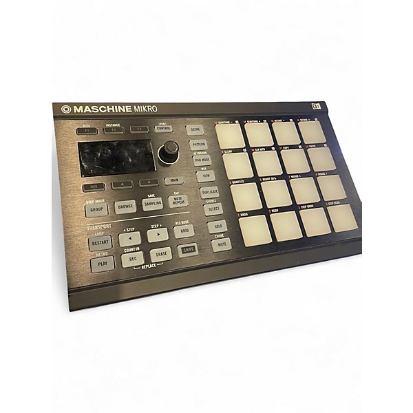 Used Native Instruments Maschine Mikro MKII MIDI controller in good condition, ready to power your beat-making workflow. Features 16 velocity-sensitive, multicolor pads, a push encoder, dedicated transport and mode buttons, and tight integration with Maschine software for fast sampling, sequencing, and performance. USB bus-powered for simple setup and portable production, it also supports MIDI control for triggering drums, instruments, and effects in your favorite DAW.