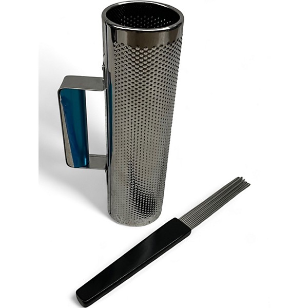 This used NO BRAND small merengue güira is in great condition and delivers crisp, bright tones perfect for traditional Latin rhythms. Featuring a stainless steel body with a textured surface for articulate scraping, it measures approximately 9 inches in length and 3 inches in diameter. Lightweight and easy to handle, this güira is ideal for both beginners and experienced percussionists seeking a reliable and responsive instrument to enhance their performance.
