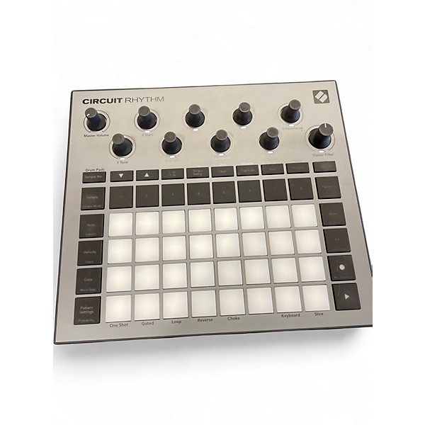 Used Novation Circuit Rhythm in great condition—an inspiring standalone sample-based groovebox and MIDI controller for fast beat-making and performance. Features an 8-track sample engine, 32 velocity-sensitive RGB pads, hands-on knobs for quick sound shaping, pattern-based sequencer, and real-time effects. Connect and sync easily via MIDI In/Out/Thru, USB, and stereo audio I/O, making it ideal for controlling external gear or building tracks without a computer.