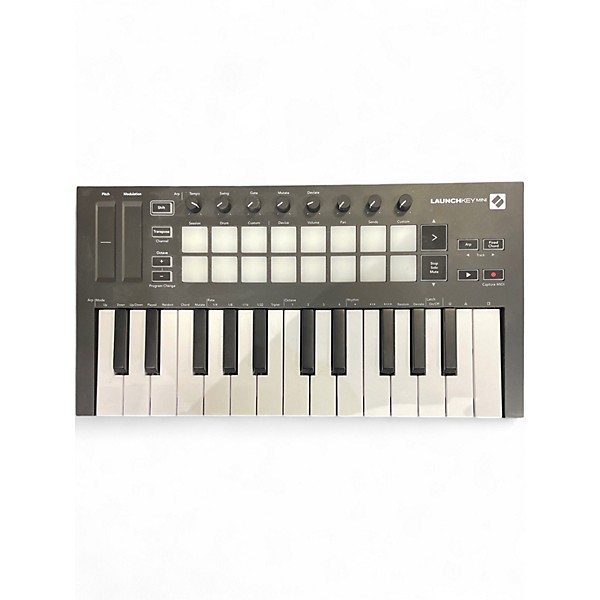Used Novation Launchkey Mini MIDI Controller in good condition—compact, USB-powered control for your music software. Features 25 mini keys, 16 velocity-sensitive RGB pads for triggering clips and drums, 8 knobs for hands-on parameter control, and dedicated transport buttons for fast workflow. Plug-and-play via USB with class-compliant MIDI over USB, making it easy to use with most DAWs on Mac or Windows. A great portable controller for producing anywhere.