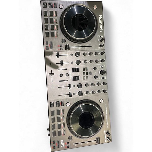 Used Numark NS4FX DJ controller in great condition, built for Serato DJ Pro and ready for pro-style mixing. It features a 4-channel standalone mixer section, large jog wheels for precise cueing, 6-inch touch-sensitive capacitive jogs, performance pads for hot cues and samples, and dedicated FX controls. Balanced XLR main outputs, RCA outputs, microphone input, and headphone monitoring make it easy to connect to club or home setups for reliable, hands-on control.