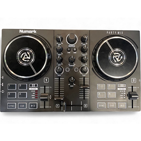 Get the party started with this used Numark PARTY MIX DJ controller in great condition. Designed for beginners and mobile DJs, it features a built-in LED light show, two decks with jog wheels, performance pads, and a smooth crossfader for easy mixing. Plug-and-play USB connectivity works with popular DJ software, and the integrated audio interface lets you monitor and play through speakers with confidence. Compact, fun, and ready for your next set.