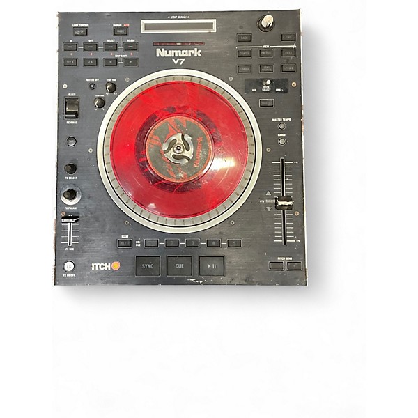 Used Numark V7 Turntable in fair condition, featuring a motorized 7-inch platter for real vinyl feel, high-resolution MIDI control, and USB connectivity for seamless integration with DJ software. Built with rugged steel housing, it supports Serato ITCH and includes touch-sensitive controls and adjustable torque. Ideal for DJs seeking reliable performance and tactile response, despite visible wear from regular use. A solid choice for digital DJs looking for affordability without sacrificing essential functionality.