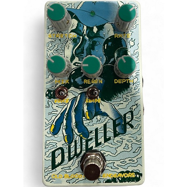 Explore lush, shifting ambience with this used Old Blood Noise Endeavors Dweller in good condition. This creative modulation/delay pedal blends chorus, vibrato, flanger, and resonant delay textures for everything from subtle movement to warped, psychedelic soundscapes. Intuitive controls let you dial in depth, rate, delay time, and feedback for finely tuned swirl and space. Standard 1/4" in/out and 9V DC center-negative power make it an easy fit on most pedalboards.