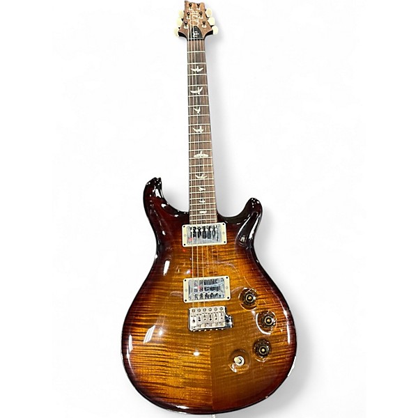 Used PRS DGT Tiger Burst Solid Body Electric Guitar in Good condition features a stunning carved flame maple top, mahogany body, and a comfortable mahogany neck with a 22-fret rosewood fingerboard. Equipped with dual humbuckers and push/pull coil-tapping, it delivers versatile tone for any style. The 25" scale length and signature DGT neck profile offer smooth playability, while the classic Tiger Burst finish adds timeless appeal. A great choice for discerning players.