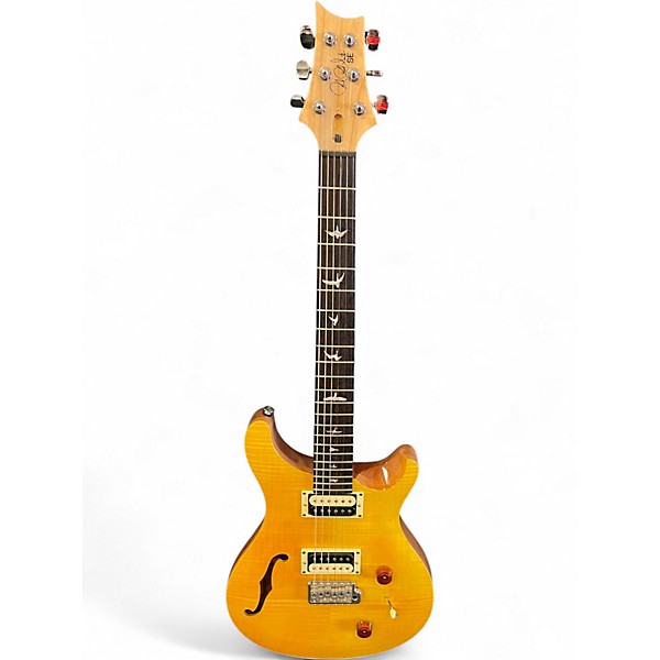 Bring stage-ready style and versatile tone home with this Used PRS SE Custom 22 Semi-Hollowbody in stunning Santana Yellow. In great condition, it pairs semi-hollow resonance with PRS playability for warm cleans, singing leads, and punchy rock rhythm. Features include a 22-fret rosewood fingerboard, 25" scale length, dual humbuckers with 3-way switching, and PRS tremolo bridge for expressive vibrato and solid tuning stability.