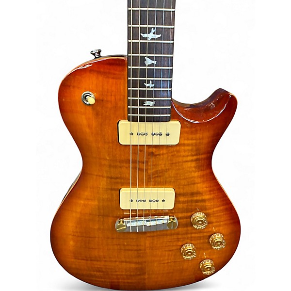 Used PRS SE245 Cherry Sunburst in great condition, this solid body electric guitar features a mahogany body, maple top, rosewood fingerboard, and a 24.5" scale length for warm sustain and comfortable playability. Loaded with dual humbuckers and a 3-way toggle switch, it delivers rich tones from crisp cleans to thick distortion. The iconic PRS bird inlays and stunning cherry sunburst finish complete the classic look of this reliable performer.
