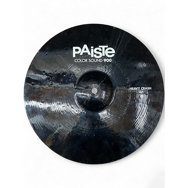 Used Paiste 16in Colorsound 900 Heavy Crash Cymbal in Good condition offers bold projection and a bright, punchy tone. Constructed from CuSn8 bronze, it's designed for power and durability, making it ideal for louder musical settings. The vibrant black finish adds visual appeal on stage. This cymbal delivers a cutting crash with a focused sustain, perfect for rock and metal drummers looking for a reliable and expressive crash at an excellent value.