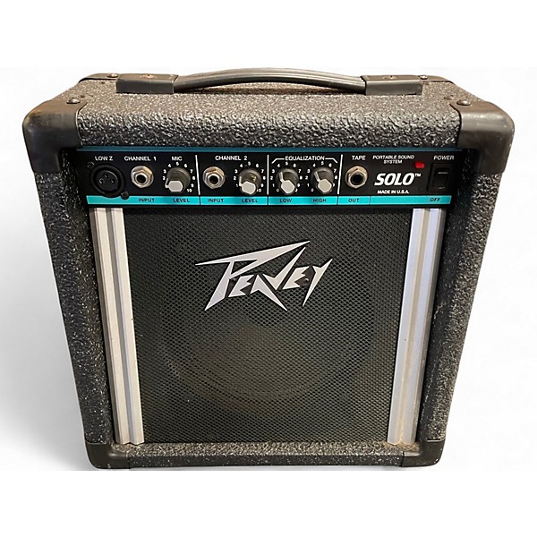 Used Peavey SOLO battery-powered powered PA speaker in good condition—an easy, go-anywhere sound solution for vocals, speeches, and small performances. Enjoy clear, punchy output from a self-contained portable PA with rechargeable battery operation for cord-free setups. Compact and rugged for quick transport, it features onboard amplification with simple controls for fast dialing in your sound, making it ideal for classrooms, events, busking, and rehearsals.