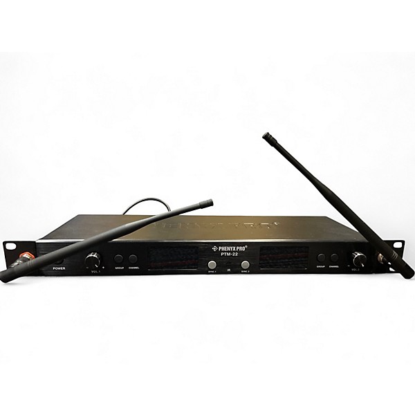 Used Phenyx Pro PTM-33 In-Ear Wireless System in excellent condition, delivering reliable UHF wireless monitoring with clear, low-latency audio for live performance and rehearsals. Features a rugged half-rack transmitter with easy frequency selection and an adjustable bodypack receiver with headphone output and volume control. Supports multiple selectable channels for stable operation in crowded RF environments, with strong range and consistent signal for confident onstage monitoring.