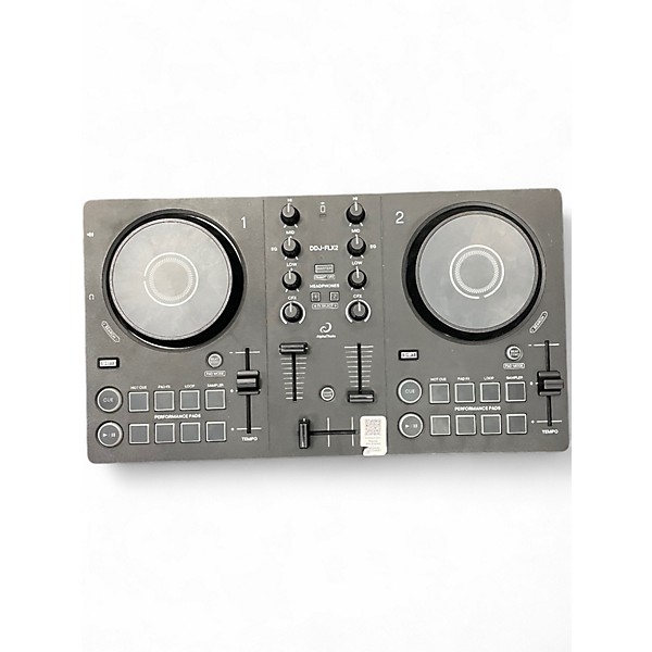 Used Pioneer DJ DDJ-FLX2 DJ Controller in Good condition, offering 2-channel mixing, full-size jog wheels, and compatibility with rekordbox and Serato DJ software. This versatile controller features Merge FX and Sample Scratch for creative transitions and real-time remixing. USB-powered for easy setup, with performance pads and onboard effects tailored for dynamic DJ sets. Ideal for both beginners and experienced DJs looking for reliable performance and intuitive controls in a compact design.