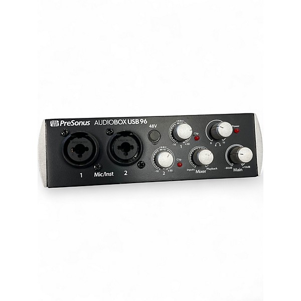 Used PreSonus AudioBox USB audio interface in good condition, ideal for home recording and streaming. This compact 2-in/2-out USB bus-powered interface features 2 combo XLR/TRS mic/instrument inputs with gain control, 48V phantom power, MIDI In/Out, and direct monitoring for low-latency recording. High-quality 24-bit, up to 48 kHz converters deliver clean, detailed sound, while balanced main outputs and a dedicated headphone output make it easy to monitor your mixes.