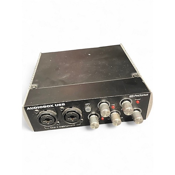 Used PreSonus AudioBox USB audio interface in fair condition, ideal for home recording and streaming. This compact 2-in/2-out USB interface features two XLR/TRS combo inputs with mic preamps, 48V phantom power for condenser mics, instrument-ready inputs for guitar or bass, and balanced line outputs plus a headphone jack for monitoring. Simple bus-powered USB connection makes it easy to add clean audio capture to your laptop or desktop.