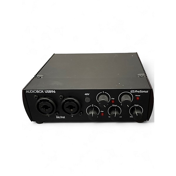 Used PreSonus AudioBox USB Audio Interface in great condition—an easy, reliable way to record studio-quality audio on Mac or PC. Features 2 combo XLR/TRS inputs with PreSonus mic preamps, 48V phantom power for condenser mics, 24-bit/48 kHz recording, and zero-latency direct monitoring. Includes stereo main outputs, MIDI In/Out for controllers, and a dedicated headphone output with level control. USB bus-powered for grab-and-go sessions.