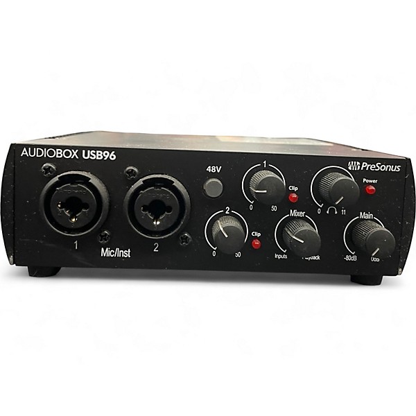 Get reliable, great-sounding recording with this used PreSonus AudioBox USB audio interface in good condition. Compact and road-ready, it connects via USB and delivers high-quality 24-bit/48 kHz audio for home studios and mobile setups. Two combo XLR/TRS inputs with Class A mic preamps and phantom power handle mics or instruments with ease, while balanced main outputs and a headphone jack provide clean monitoring. Perfect for vocals, guitar, podcasts, and more.