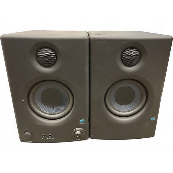 Used PreSonus Eris E3.5 Powered Monitor in great condition, offering studio-quality sound in a compact design. Ideal for multimedia production, these 3.5-inch woven composite drivers deliver accurate audio with 25W per side of Class AB amplification. Featuring front-panel volume control, auxiliary input, and headphone jack, they're perfect for any desktop setup. Balanced TRS and unbalanced RCA inputs on the rear ensure flexible connectivity. Enjoy crisp highs and tight bass in a space-saving, reliable monitor.